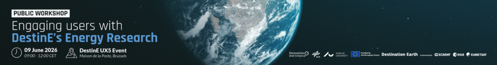 This workshop complements a dedicated session on energy during the DestinE 5th User eXchange event (DestinE UX5) in Brussels on 10 June (14:05 – 15:05 CET). Participants of this public workshop must register for the UX5 event in due time to enter the venue. Find more information here.